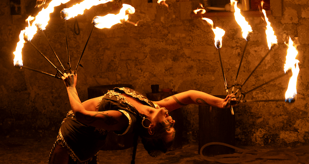 Nel suo lavoro il fuoco diventa linguaggio antico, danza viva che parla di trasformazione, coraggio e presenza.